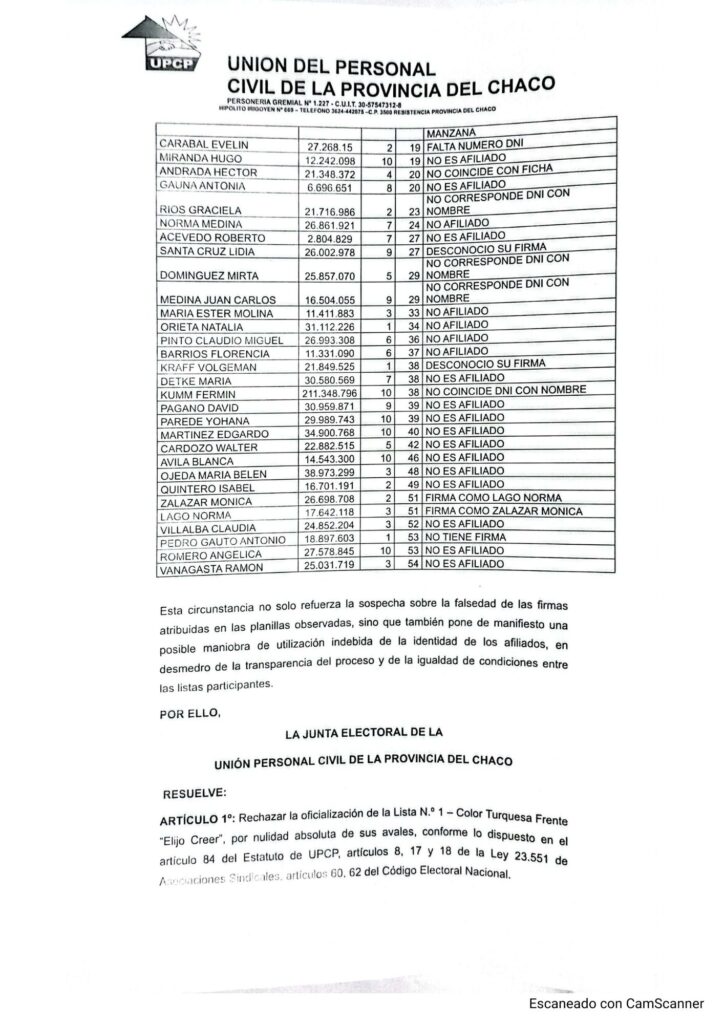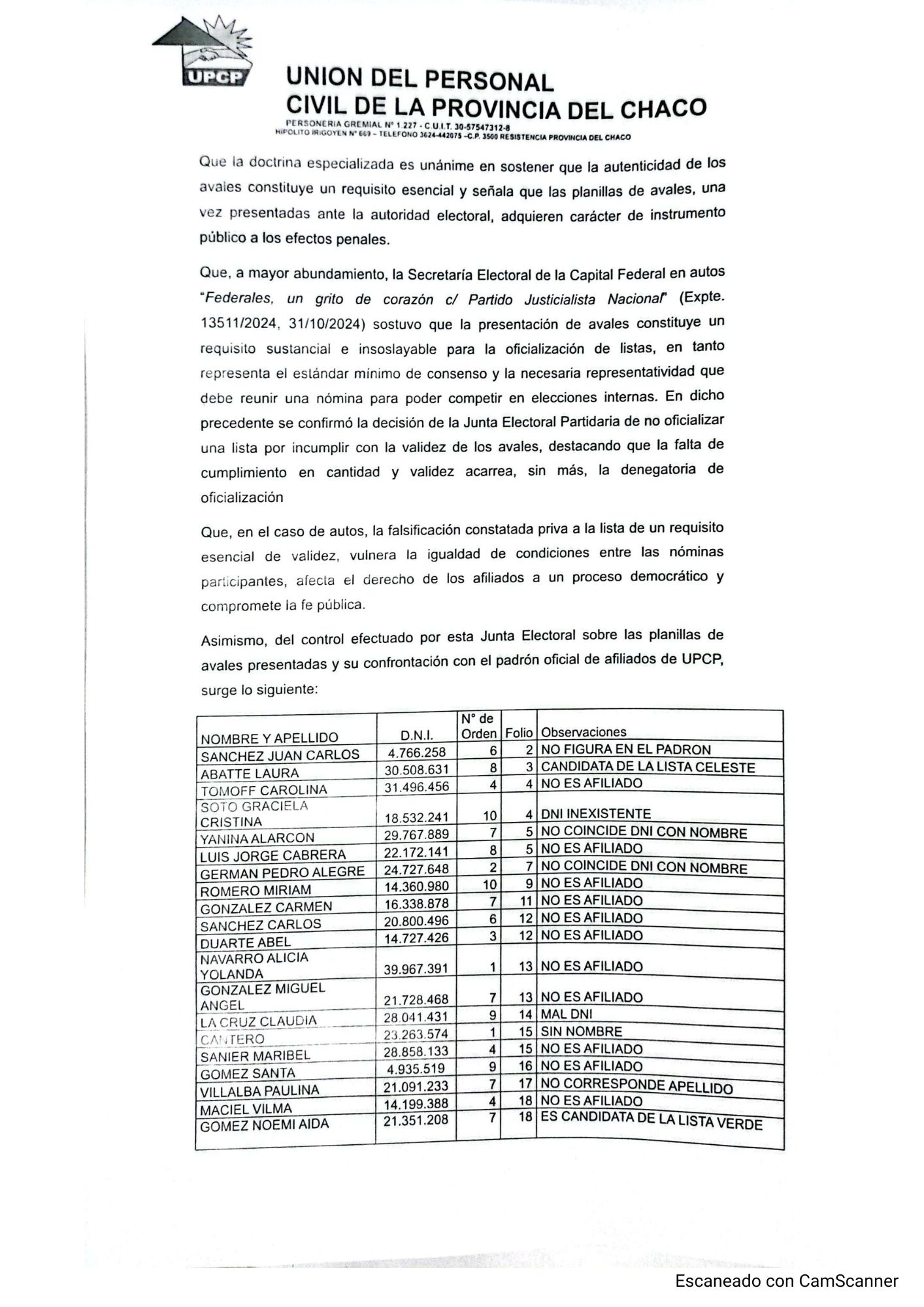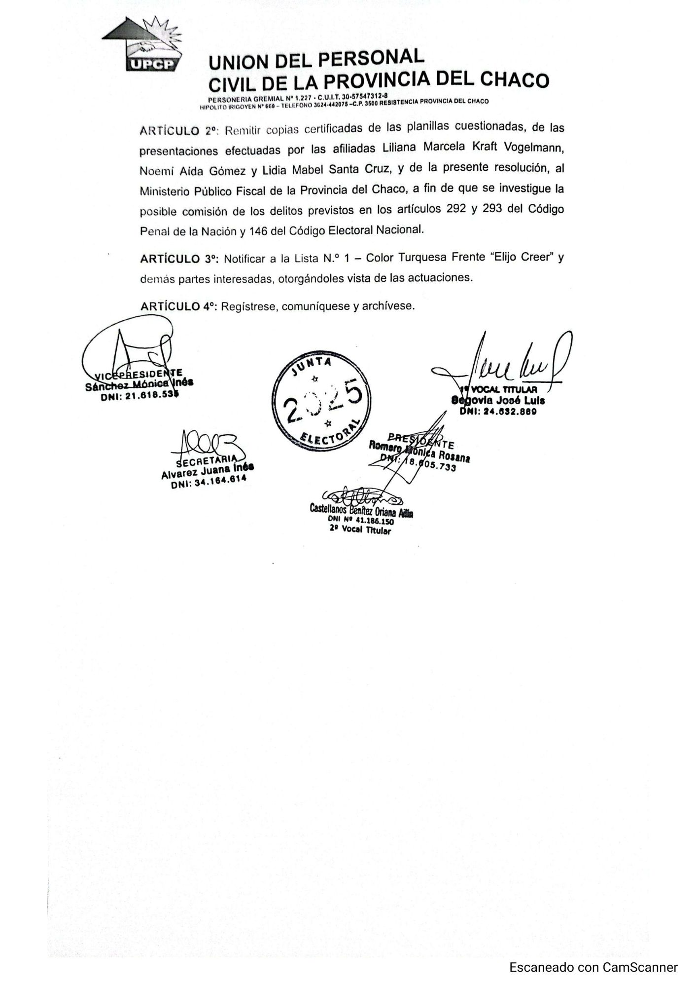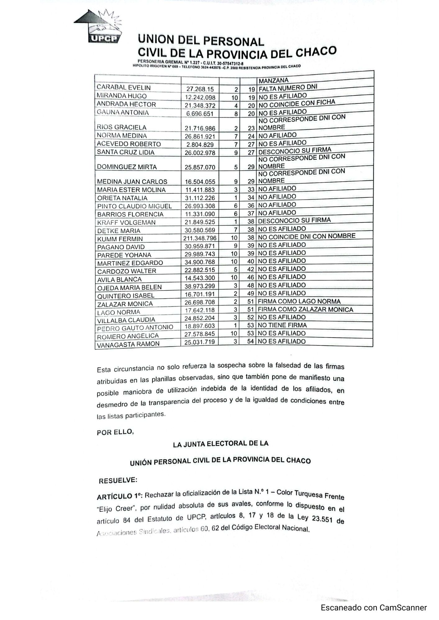 HIZO LUGAR A LA SOLICITUD FORMULADA POR LA LISTA Nº 2 “VERDE MANZANA” Y LA LISTA Nº25 COLOR “CELESTE” COMO RESULTADO DE LOS PROBLEMAS PRODUCIDOS POR FALTA DE FUNCIONAMIENTO DE